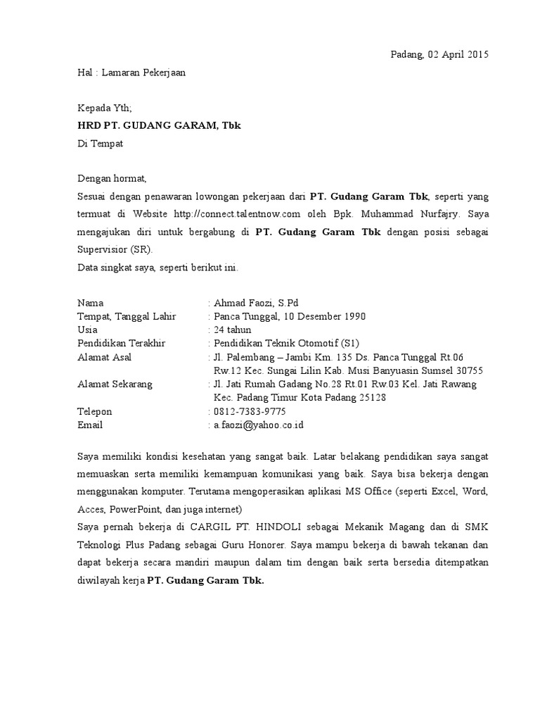 DOC) Contoh surat lamaran kerja | Iki Dans - Academia.edu