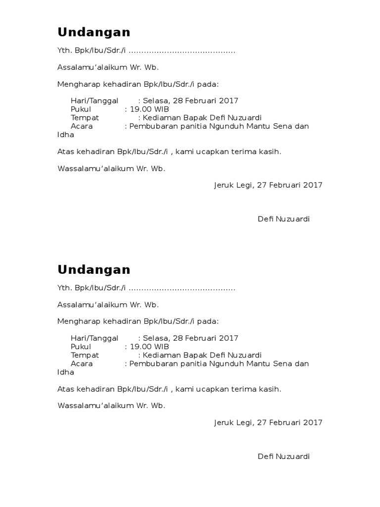 DOC) Undangan Rapat Pembentukan Panitia Resepsi Pernikahan | Iin Agustian - Academia.edu