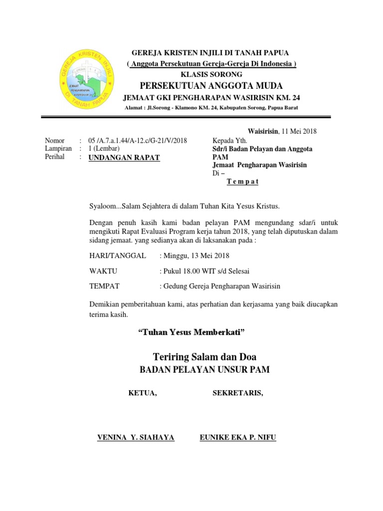 Contoh Surat Undangan Rapat Gereja | Surat, Undangan, Injil