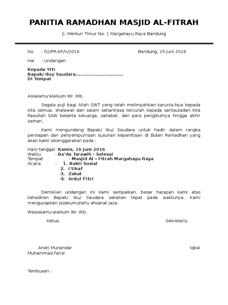 Undangan Rapat Pembentukan Panitia Bulan Suci Ramadhan