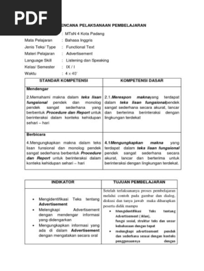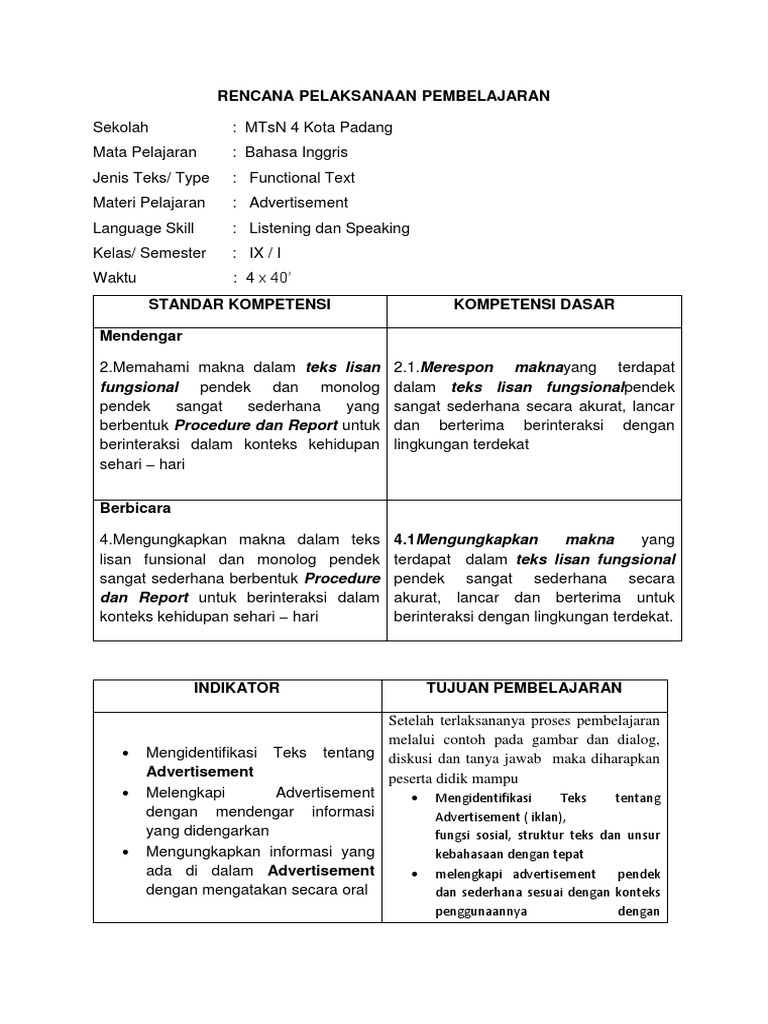 RPP Advertisement Listening and Speaking 2017-2018