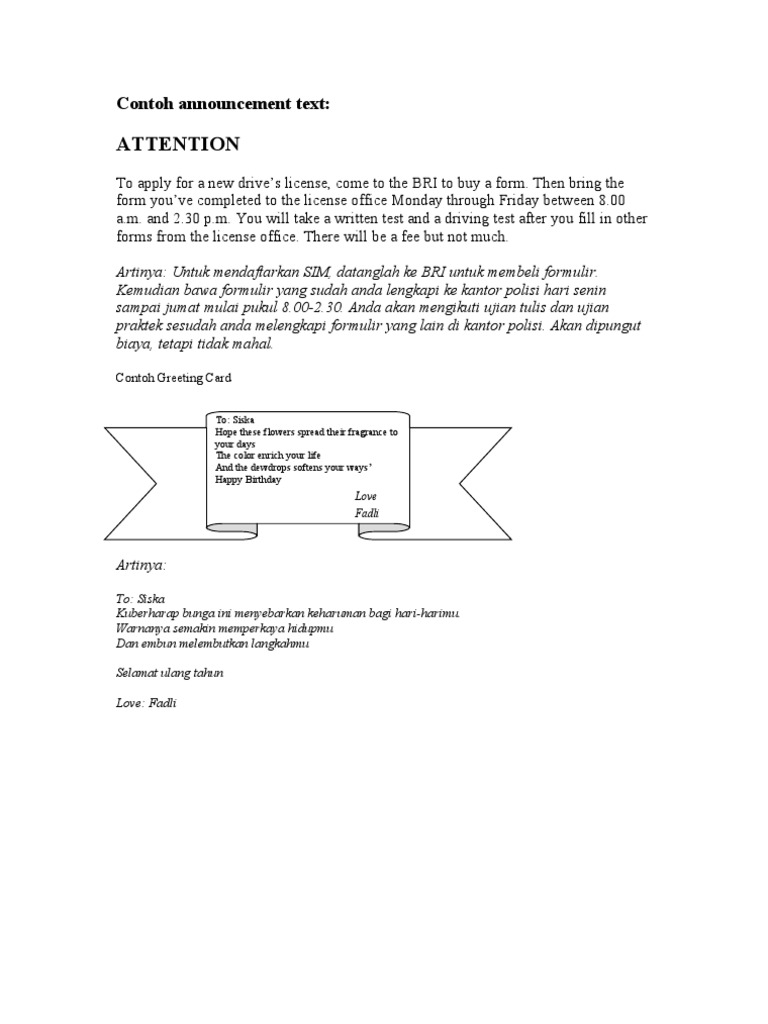 contoh announcement text Pengertian,tujuan,Jenis,Ciri