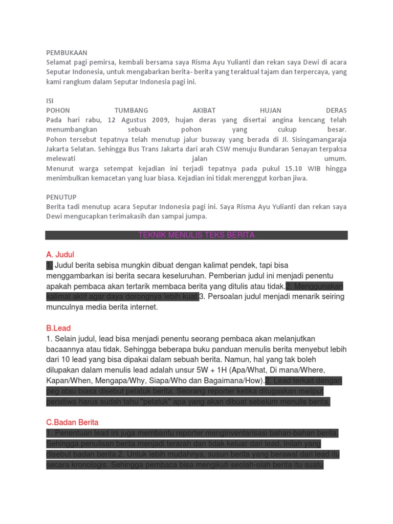 Contoh Teks Pembawa Berita Dan Reporter - Mosaicone