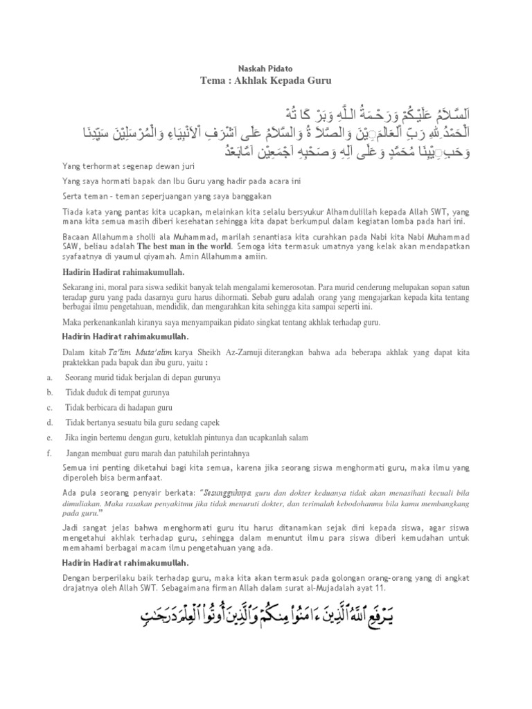 DOC) Contoh Naskah Pidato Tema Akhlak PIDATO | Muhammad Agwal - Academia.edu
