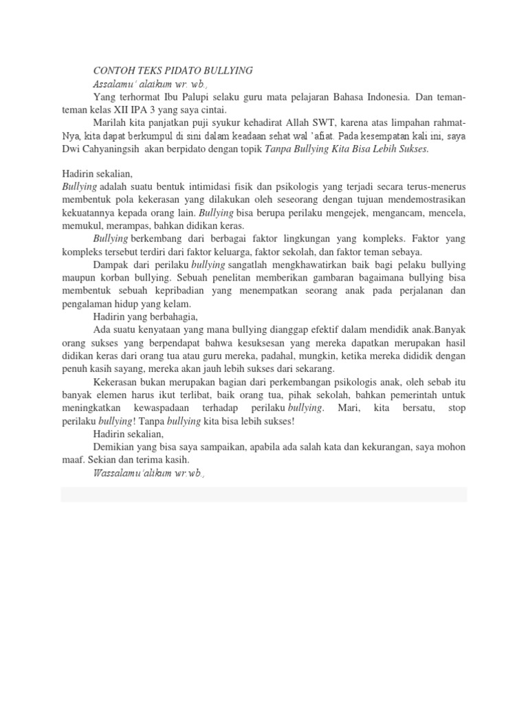 Contoh Pidato Bahasa Inggris Tentang Bullying - Paja Tapuih