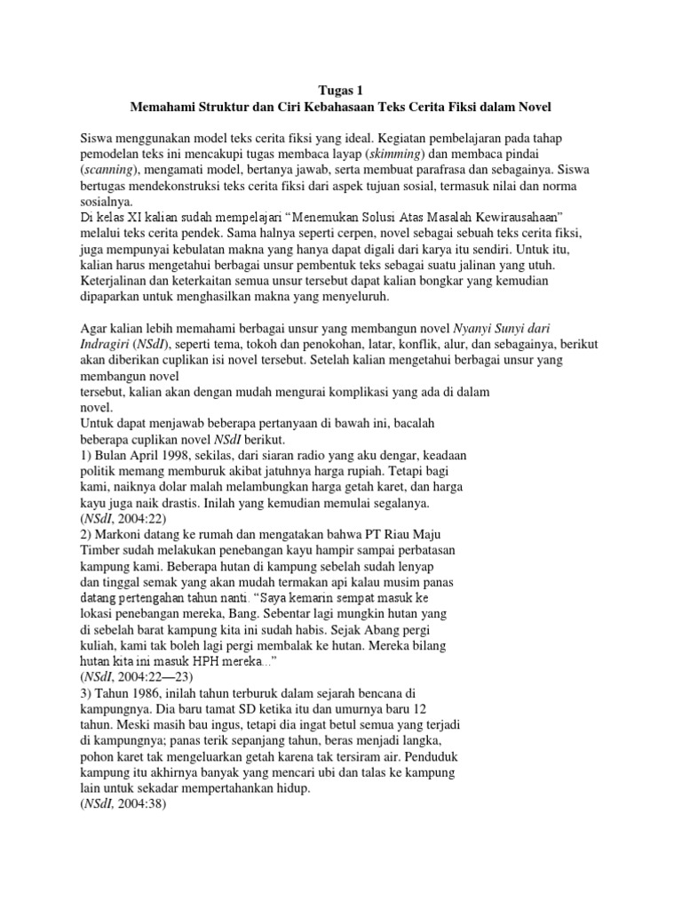 Tugas 1 Memahami Struktur Dan Ciri Kebahasaan Teks Cerita Fiksi Dalam Novel