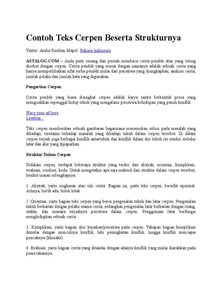 Contoh Teks Cerpen Beserta Strukturnya
