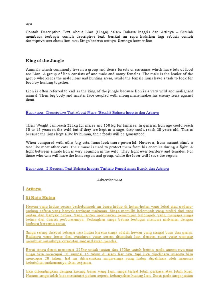 Contoh Descriptive Text Dalam Bahasa Inggris Dan Terjemahannya - Contoh Ert