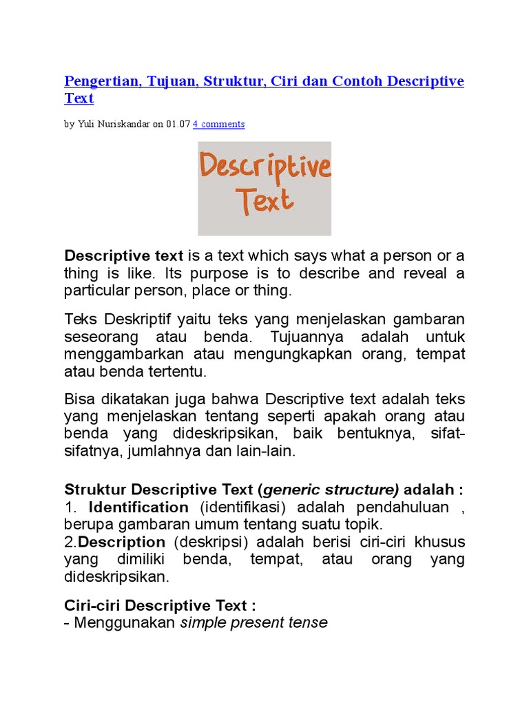 Pengertian Tujuan Struktur Ciri Dan Contoh Descriptive Text