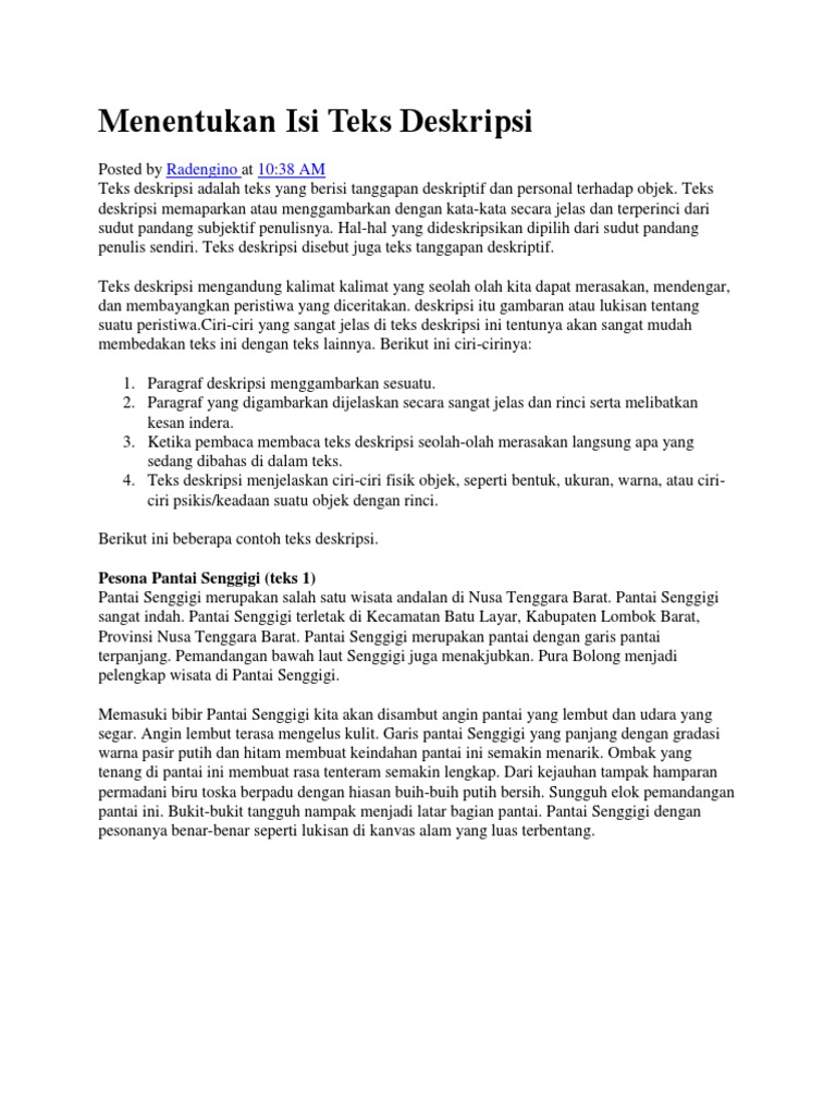 Menentukan Isi Teks Deskripsi: Radengino 10:38 AM