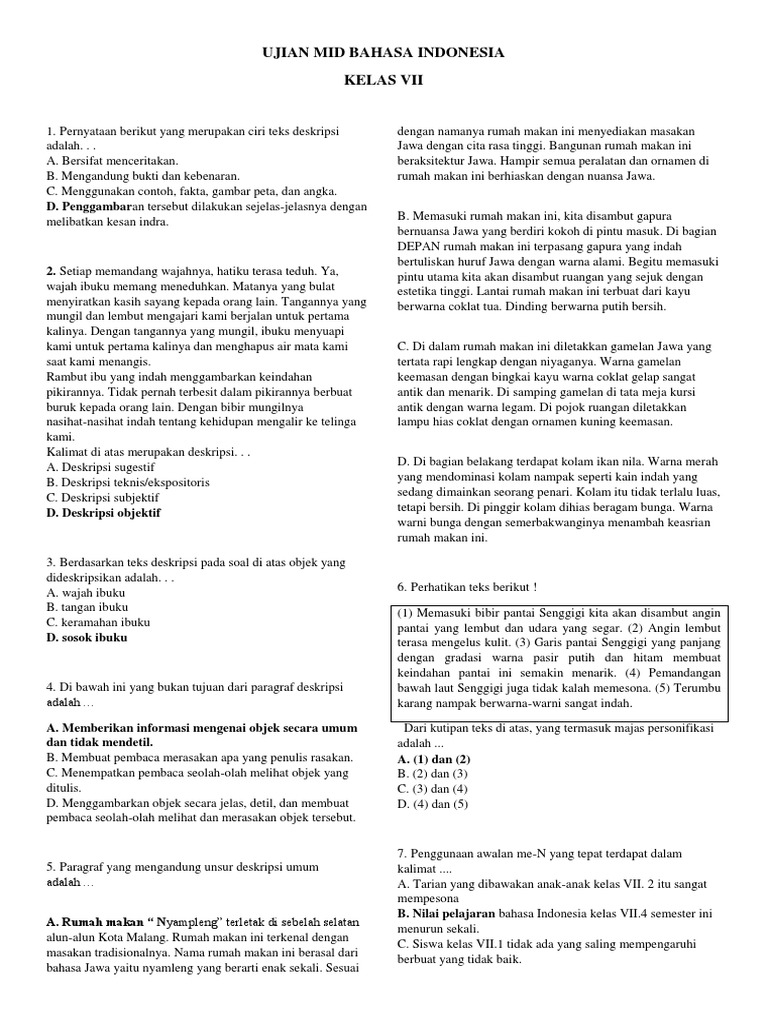 Contoh Soal Teks Deskripsi (Kelas VII) | PELAJARAN BAHASA INDONESIA DI JARI KAMU