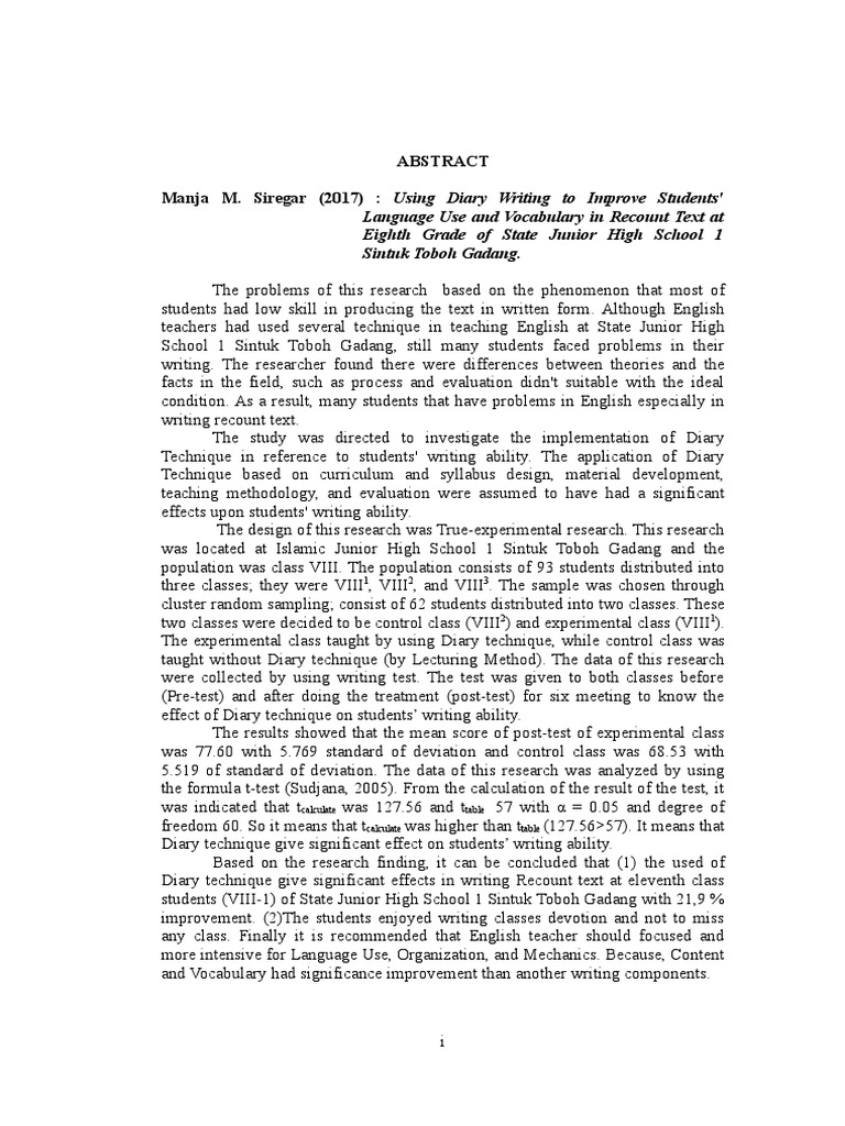 THE EFFECTIVENESS OF DIARY WRITING ON STUDENTS WRITING OF RECOUNT TEXT - PDF Free Download