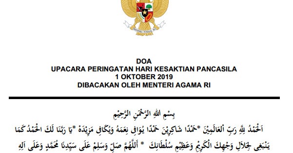 Doa Upacara Hari Kesaktian Pancasila Tahun 2019 - Kemenag | Informasi Pendidikan dan Dunia Kerja