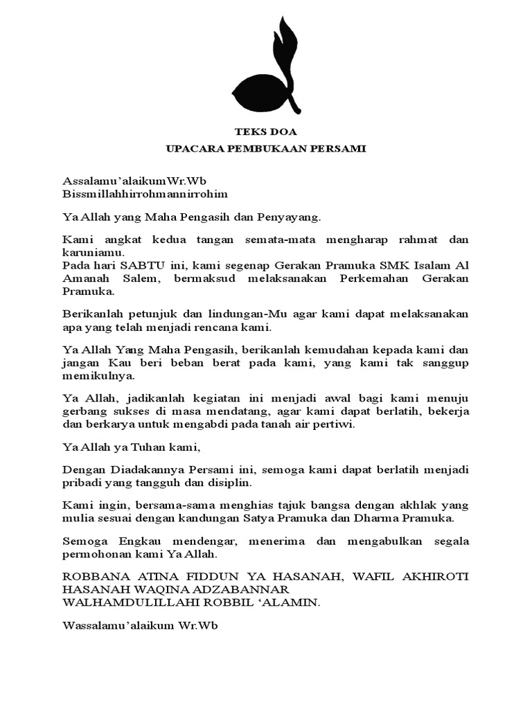 Teks Doa Upacara Pramuka | Pramukapedia