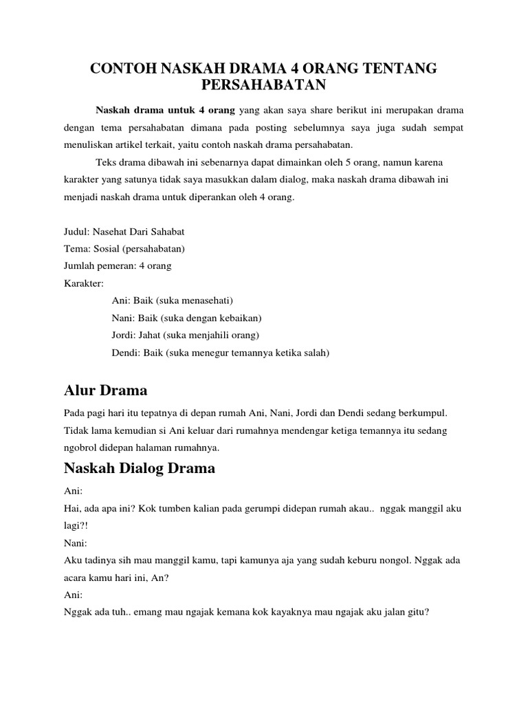 Contoh Naskah Drama 4 Orang Tentang Persahabatan