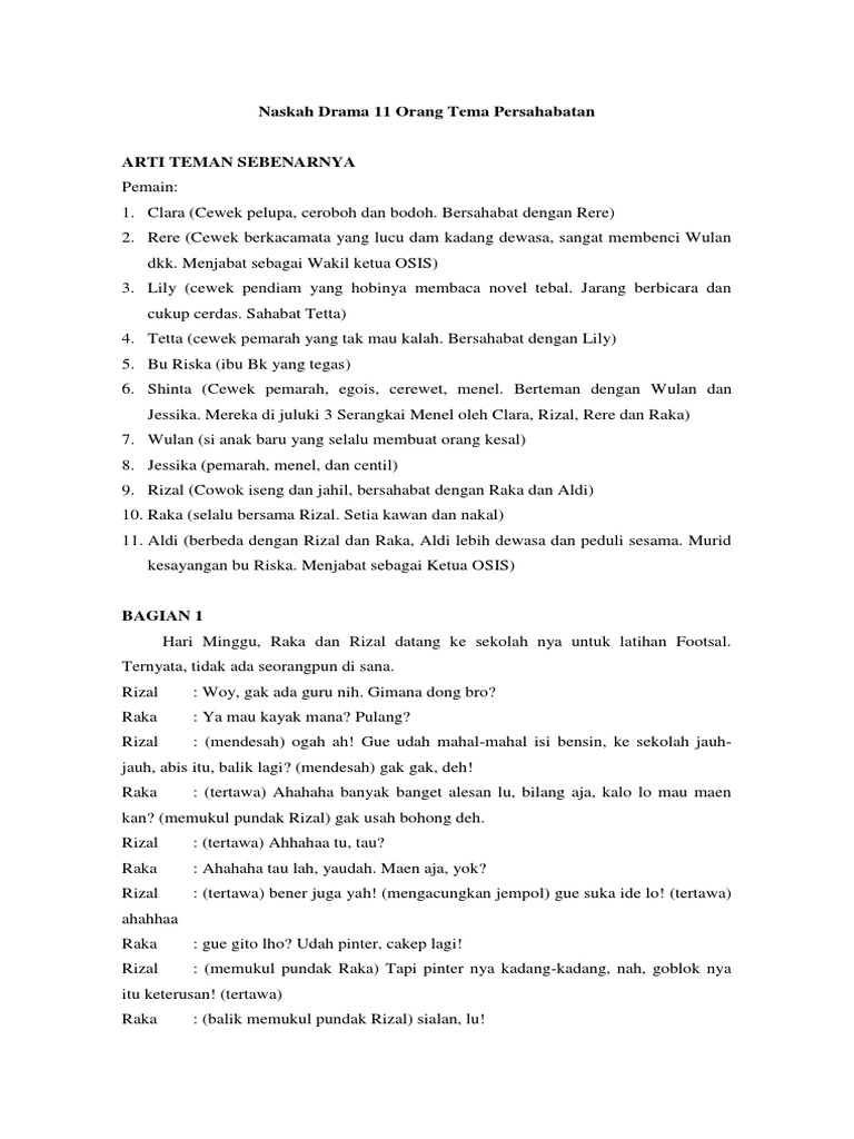 DOC) Contoh Teks Drama Persahabatan 7 orang Tema : Persahabatan Judul : Semangat Dari Sahabat Tokoh : -Mahdiyatun Silvya Dewi | aisyah abrianti - Academia.edu