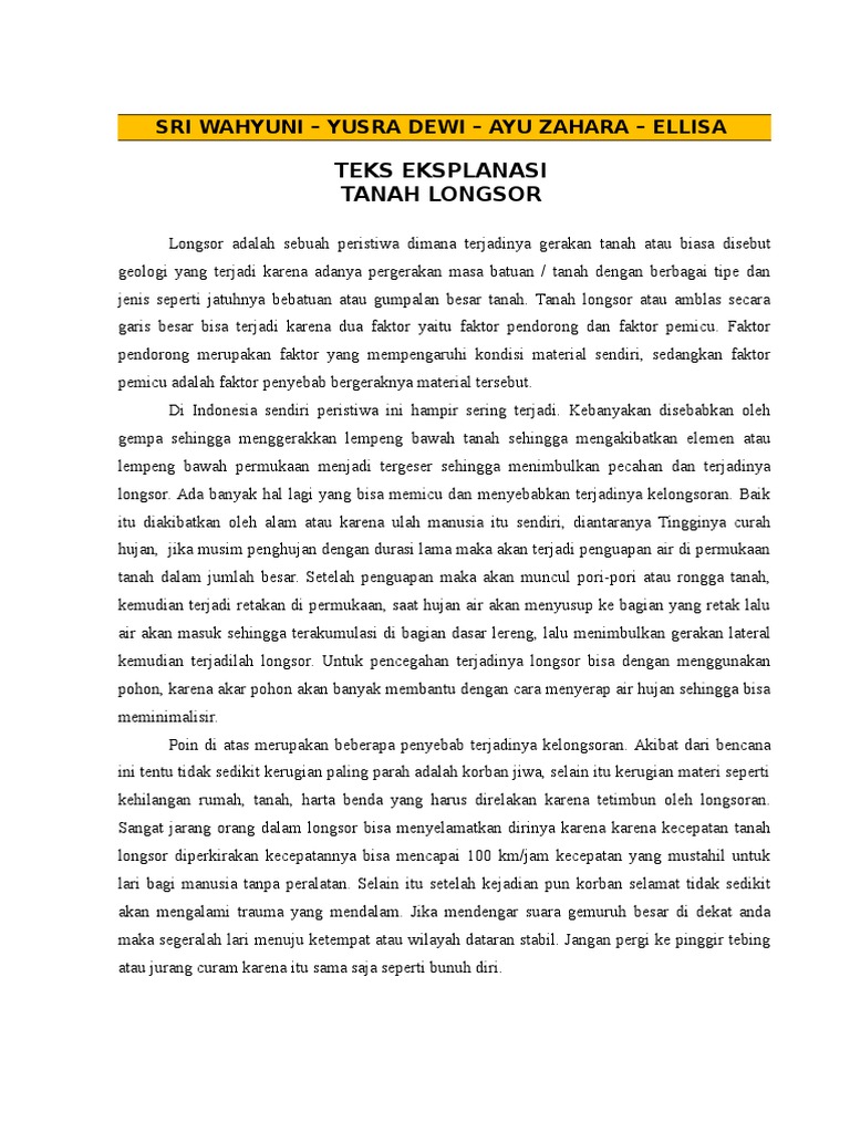 Contoh Teks Eksplanasi Tanah Longsor Dan Struktur