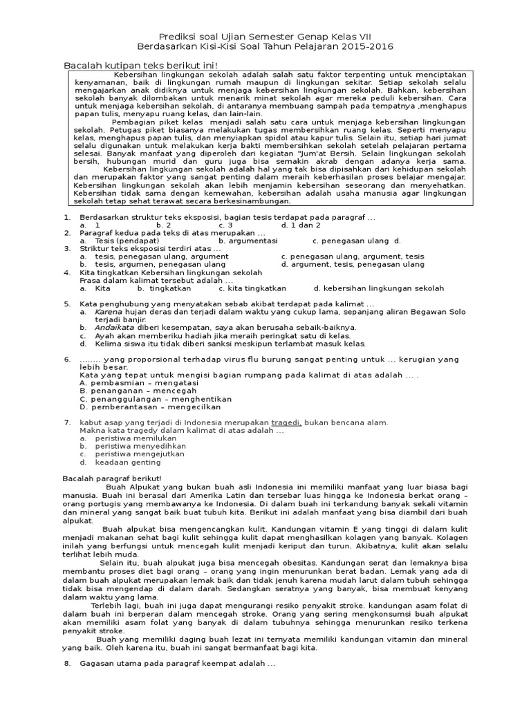 Menganalisis Teks Eksposisi Menjaga Kebersihan Lingkungan Sekolah Tesis