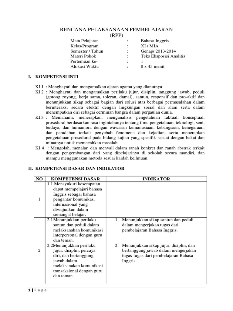 Web viewMateri Pokok :Struktur teks eksposisi Alokasi Waktu:2Minggu x 4 Jam pelajaran @ 45 Menit… - [DOCX Document]