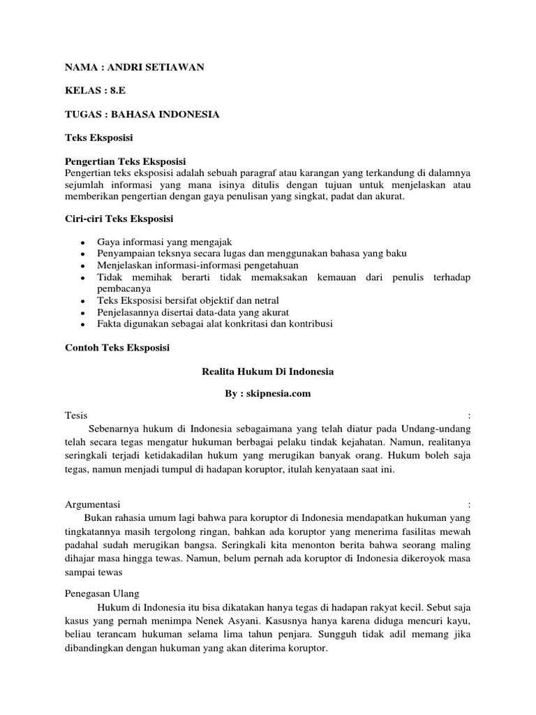 Contoh Teks Eksposisi Fakta Hukum Di Indonesia