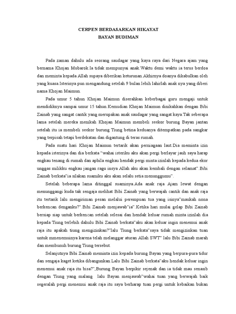 Contoh Hikayat Yang Diubah Menjadi Cerpen - Contoh Kertas