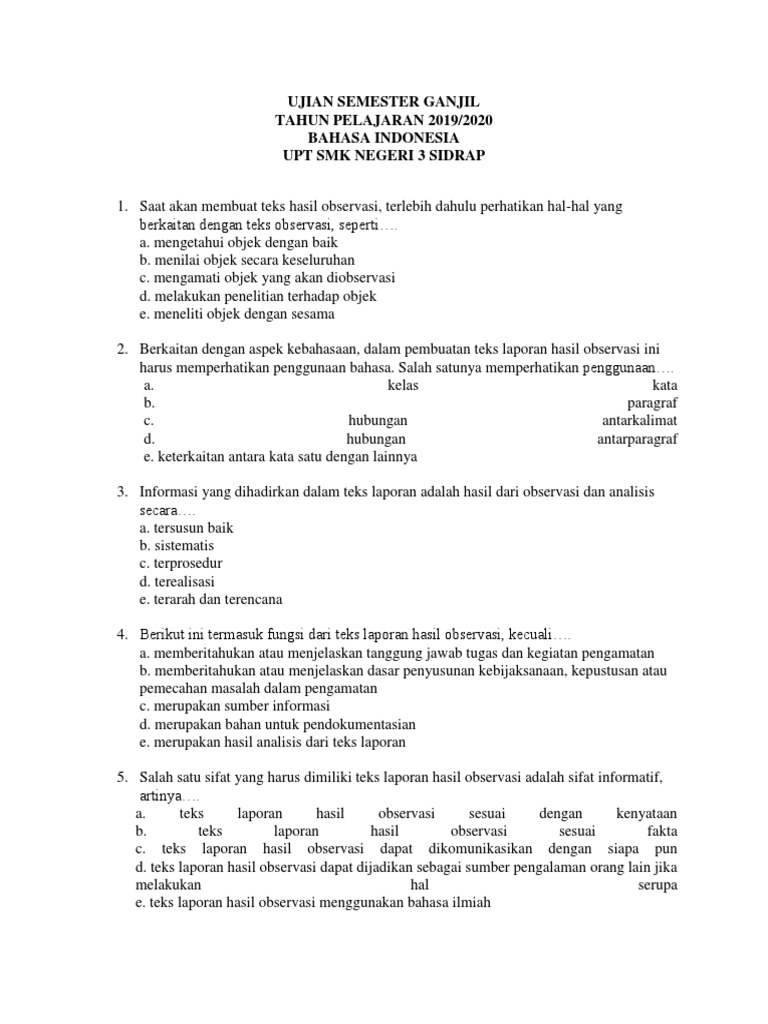 DOC) 100 soal Bahasa indonesia kelas 10 k13 | Axel Dian - Academia.edu
