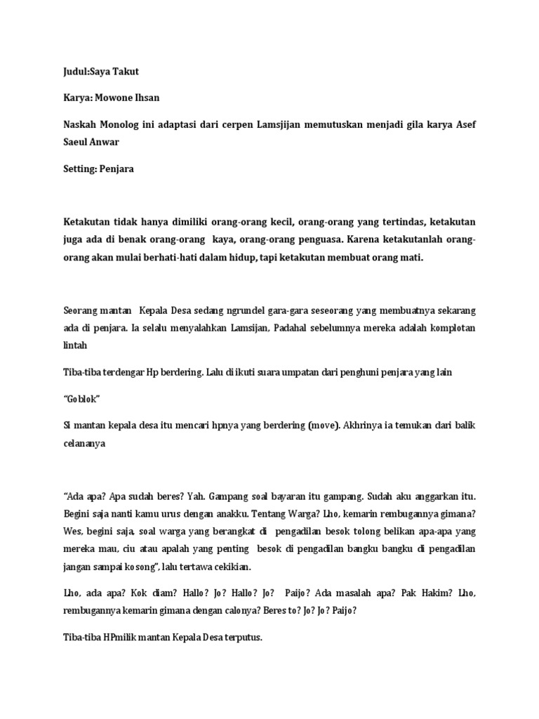 PDF) Naskah Monolog | kurokuro bas - Academia.edu