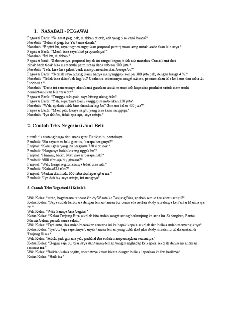 Teks negosiasi adalah teks yang berisi tentang hubungan atau interaksi antara dua orang atau lebih untuk memutuskan sesuatu dari kepentingan yang berbeda.docx - [PDF Document]