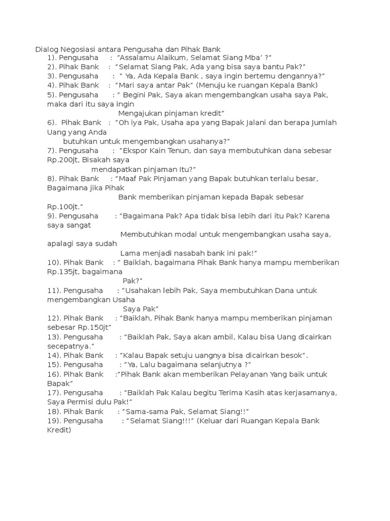 Contoh Teks Negosiasi Peminjaman Uang Di Bank