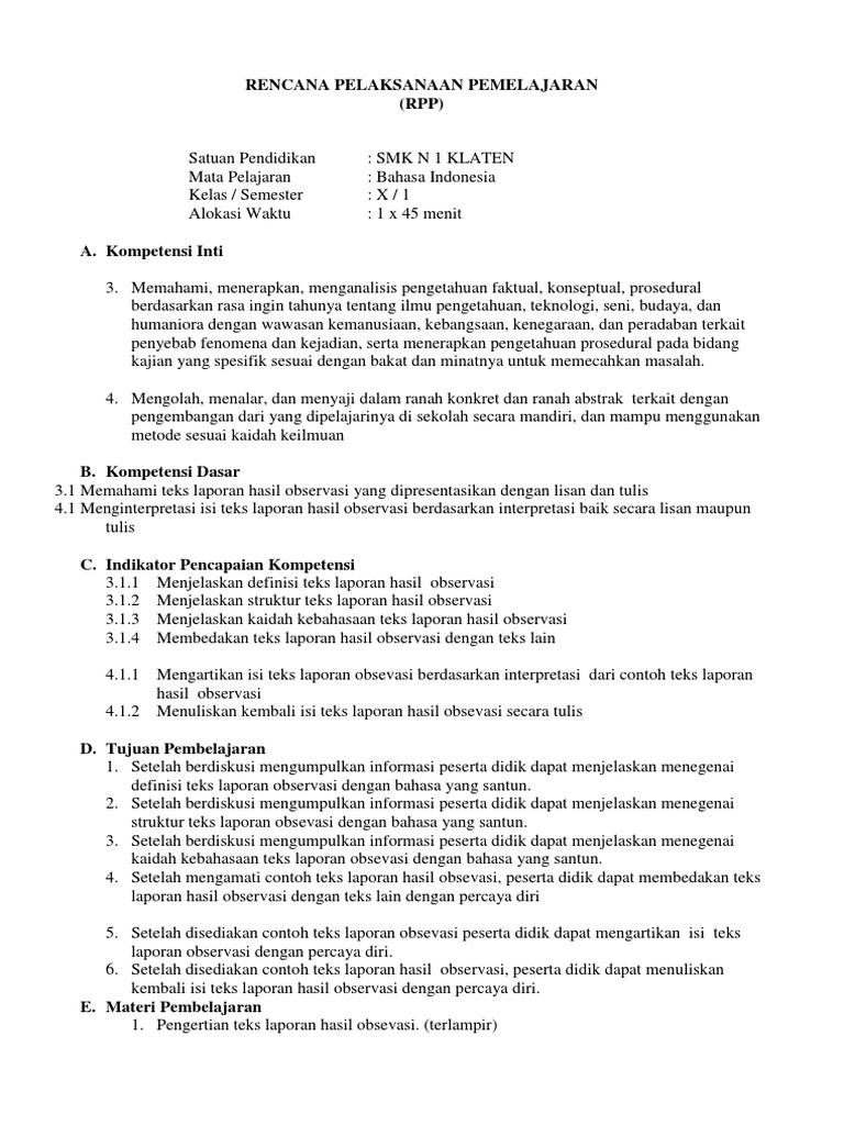 Rpp kelas 7 teks observasi
