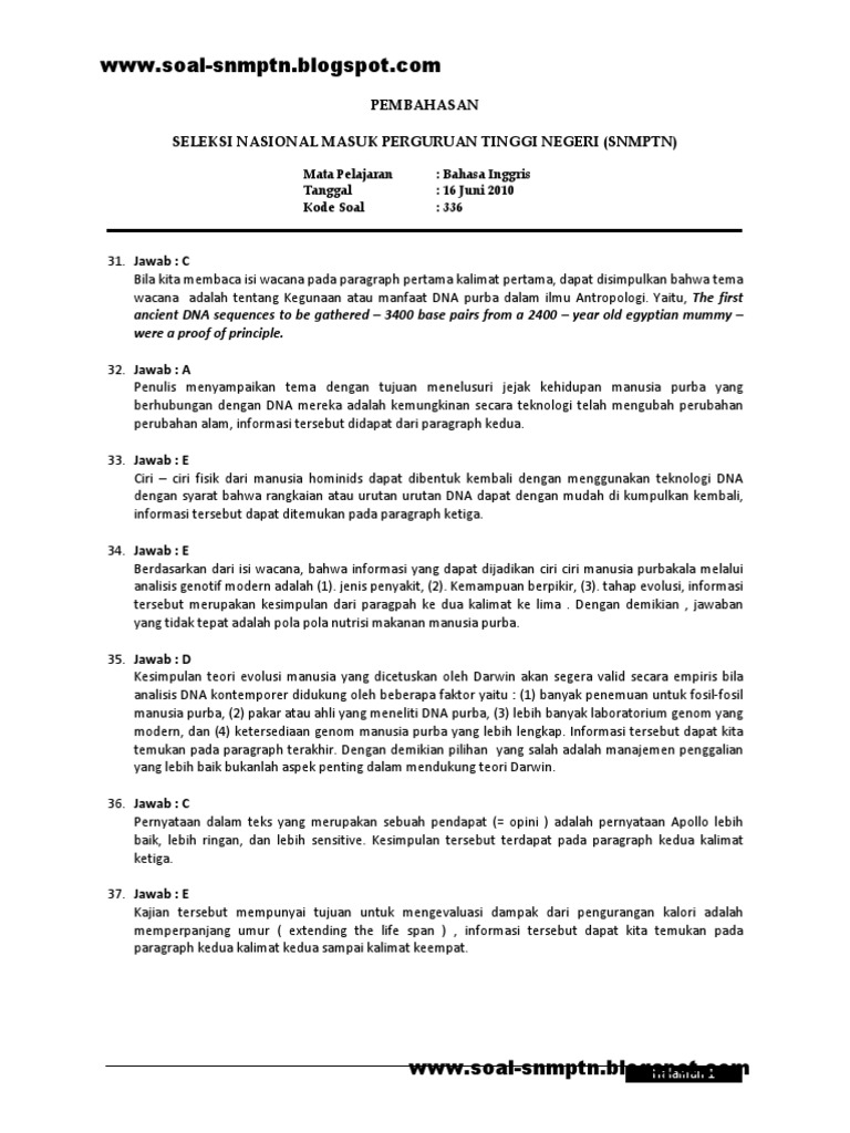 Soal Sbmptn Bahasa Inggris Dan Pembahasan Pdf - Guru Ilmu Sosial