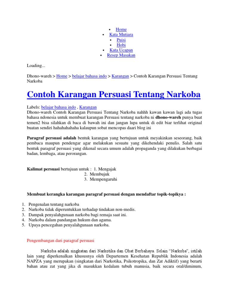 Contoh Paragraf Persuasi Tentang Narkoba - Aneka Macam Contoh