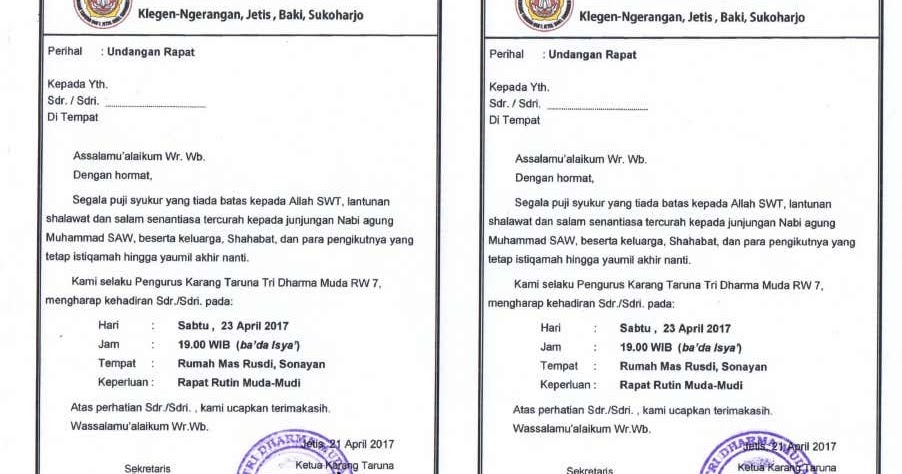 Contoh Surat Udangan Rapat Karang Taruna 2019 | Kumpulan Contoh Surat dan Proposal