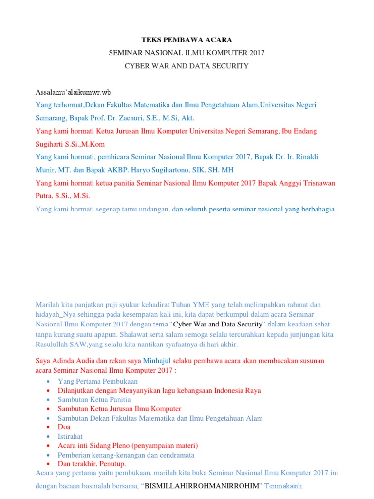 DOC) TEKS PEMBAWA ACARA SEMINAR NASIONAL | Himma Hasymidah Aulia - Academia.edu
