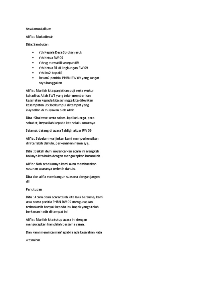 Contoh Teks MC Pengajian Rutin Mingguan sederhana #tutorial pembawa acara #MC majlis taklim - YouTube