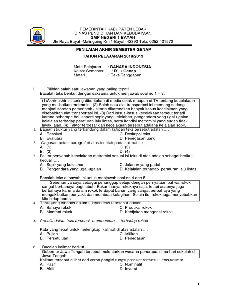 DOC) SOAL USBN PAKET 2 ( 1-45) | Sadewa Wenas Arkananta - Academia.edu
