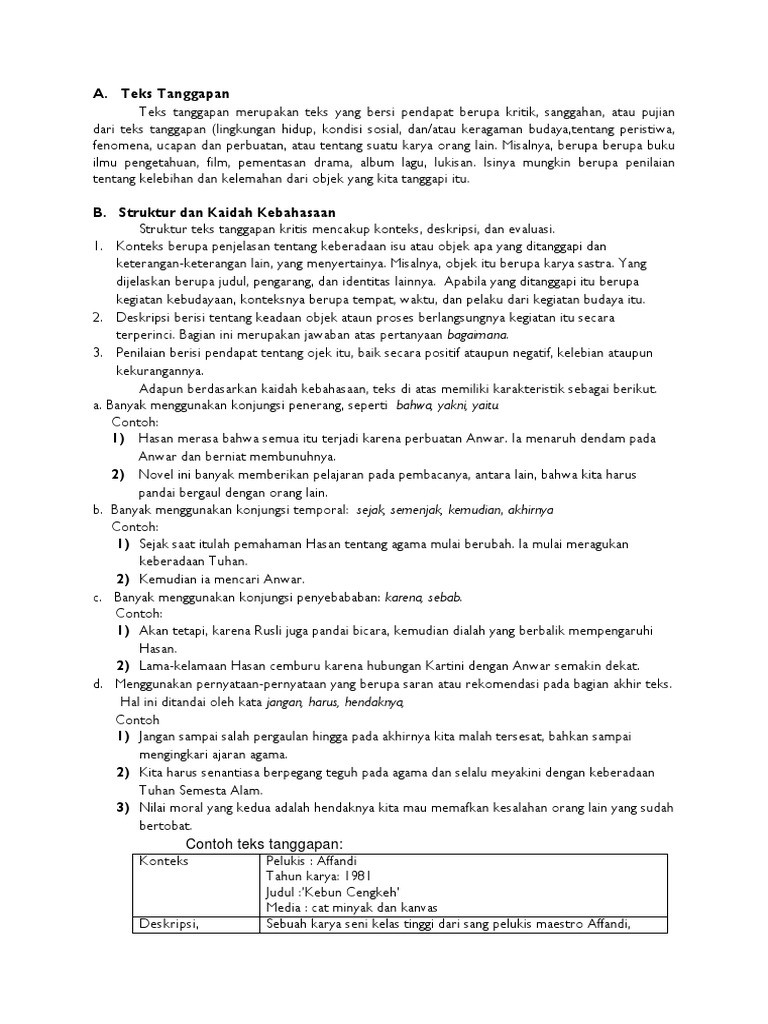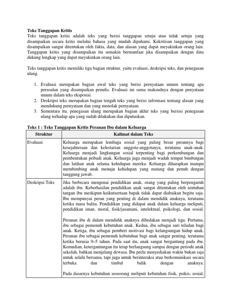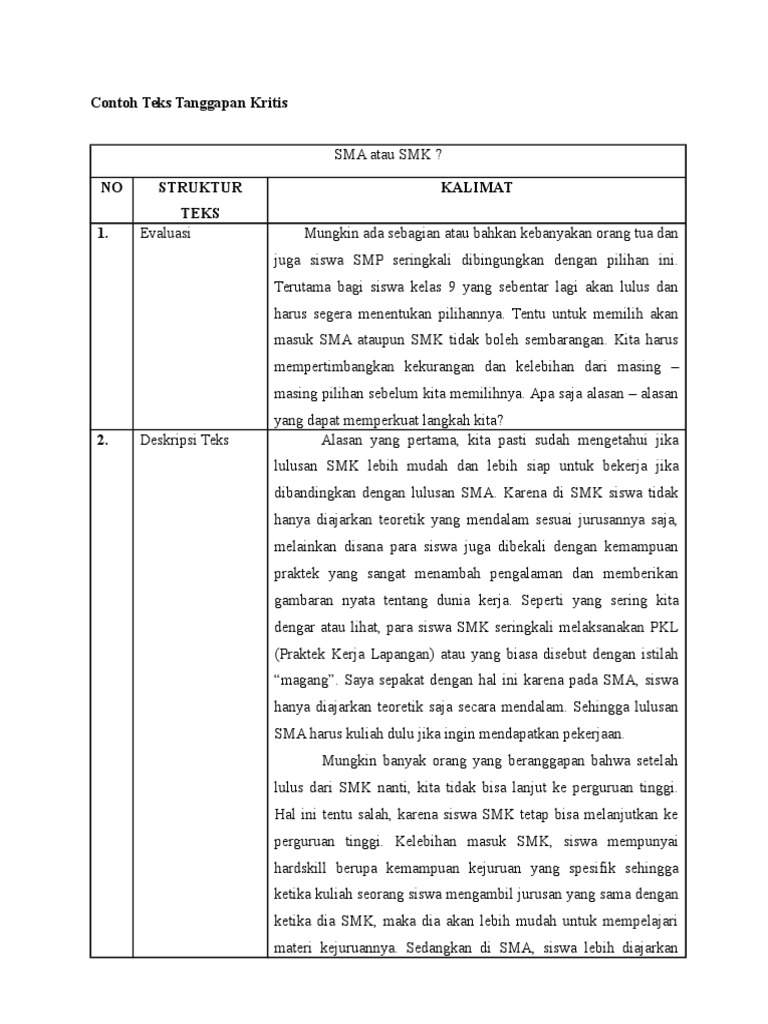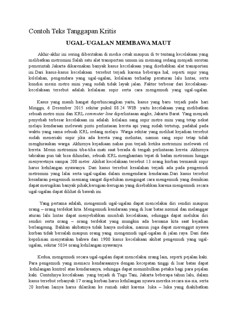 DOC) Contoh Teks Tanggapan Kritis | fiola raynan - Academia.edu