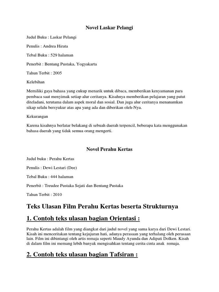 Contoh Teks Ulasan - Novel,Buku, Drama, Puisi, Lagu | dosenpintar