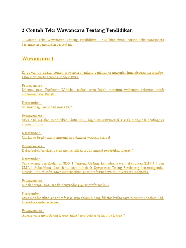 2 Contoh Teks Wawancara Tentang Pendidikan