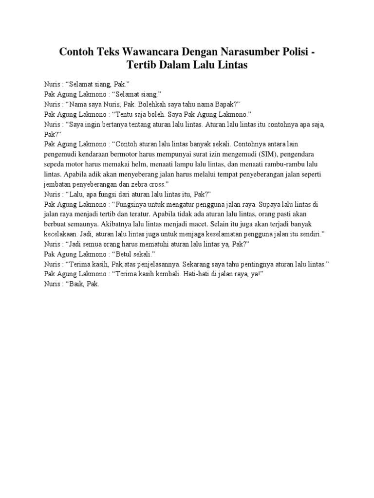 Contoh Teks Wawancara Dengan Narasumber Polisi - Tertib Dalam Lalu Lintas