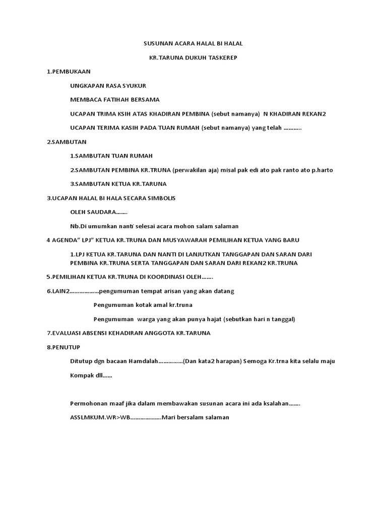 Susunan Acara Halal Bi Halal Karang Taruna
