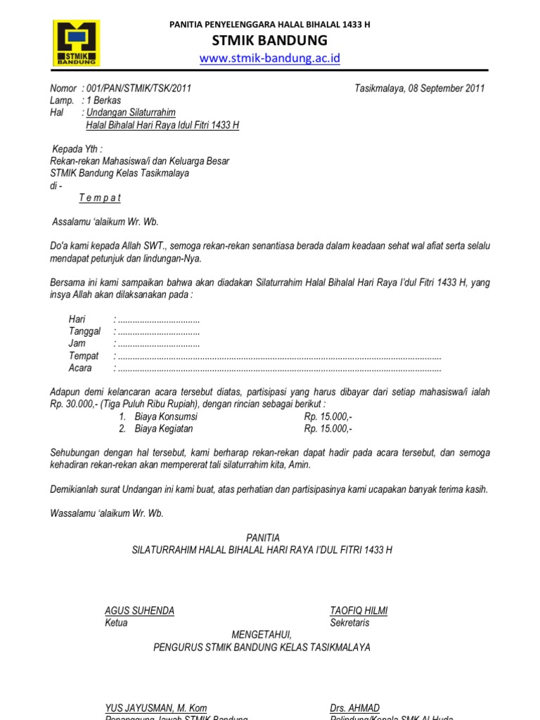 Contoh Surat Undangan Halal Bihalal Idul Fitri Rt - Kumpulan Surat Penting