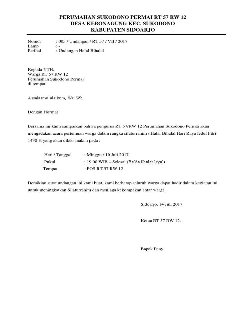 Contoh Surat Undangan Halal Bi Halal Rt Primaya – Cuitan Dokter