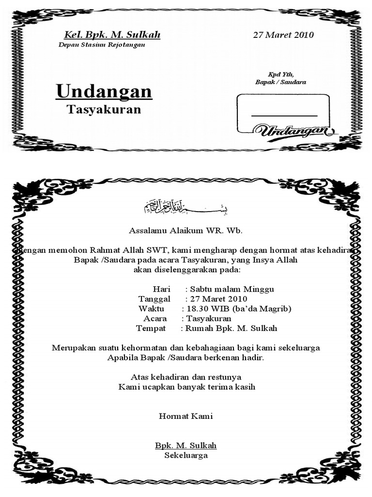 Contoh Undangan Tasyakuran Haji Pdf - Nusagates