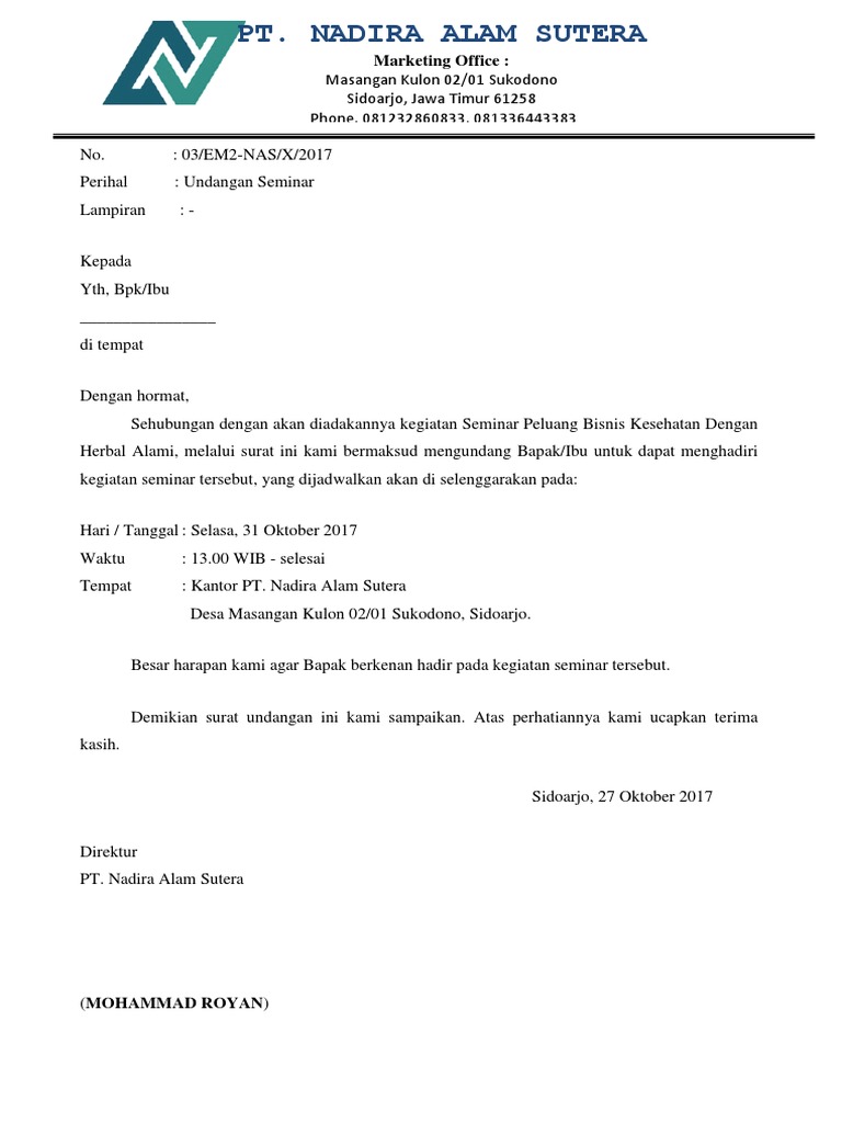 Contoh Surat Undangan Seminar Yang Baik | Belajar Office