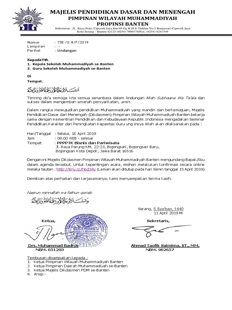 Contoh Surat Undangan Seminar versi Ms. Word Document