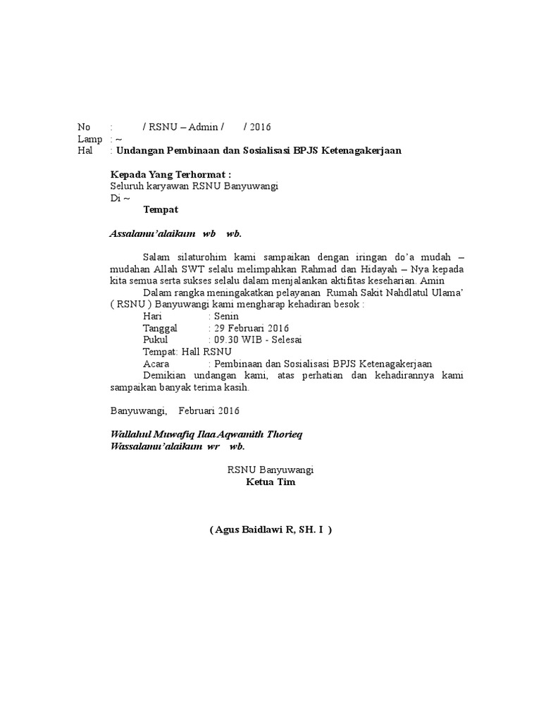 Contoh Surat Undangan Sosialisasi Bpjs Ketenagakerjaan - Sample Surat Undangan