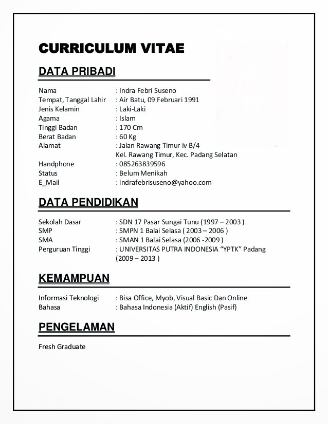Contoh CV: Format Lengkap Curriculum Vitae / Daftar Riwayat Hidup