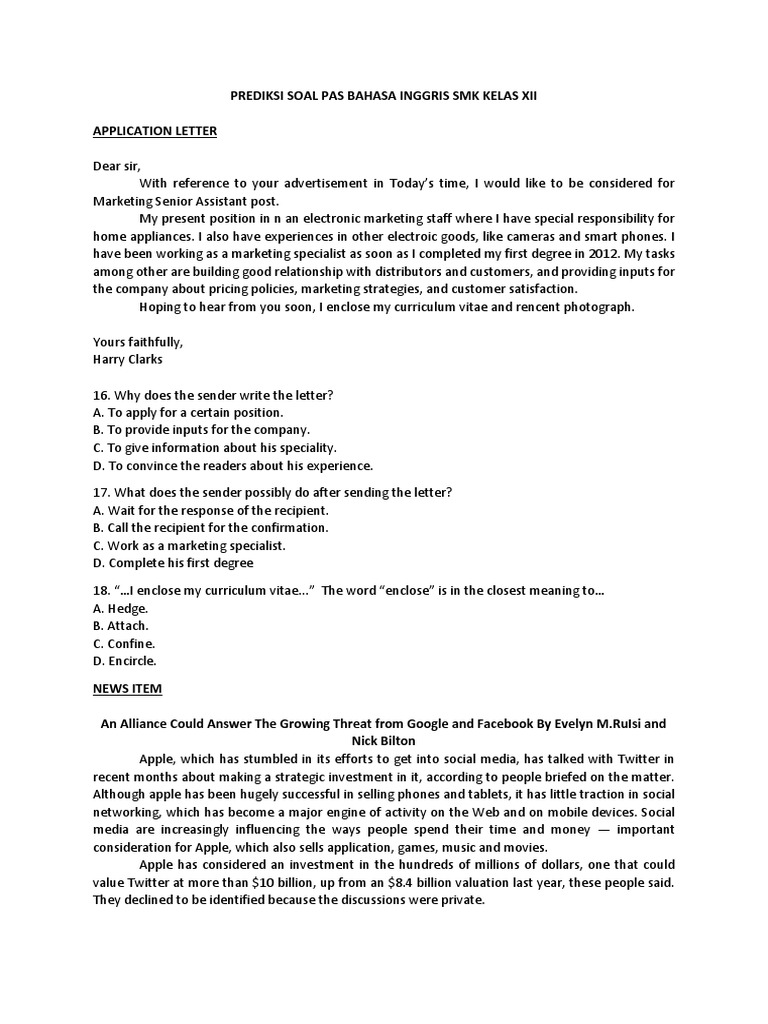 Contoh surat lamaran pekerjaan bahasa ingris ap 3 smk pariwisata bait…