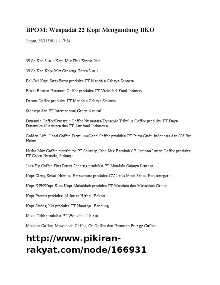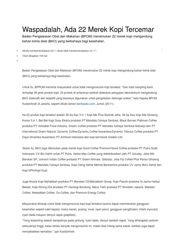Kopi Yang Dilarang BPOM